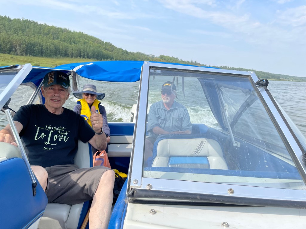 Now it’s a different story. This lake is a favourite for fishing, boating, kayaking – yet still not for swimming, for no apparent reason other than ‘nobody does it!” I enjoyed a lovely ‘cruise with coffee and cookies’, courtesy of captain Glen and his wife Lois; shared with my sis Ruth and her husband Eldon. But for the record, I have resolved I’m not visiting this beautiful, clean body of water again without taking a dip!