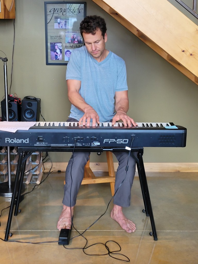A bonus to the party morning’s kitchen kaffuffle was a rehearsal for Derryl’s last minute special request to add to the planned program. Bryan Adam’s Everything I Do (I Do It For You): a duet by son Brad on the keyboard and son-in-law Damien on the electric guitar: Some of the best things – and for the performers, the scariest – are the last minute impulses! It was amazing; made my heart sing!