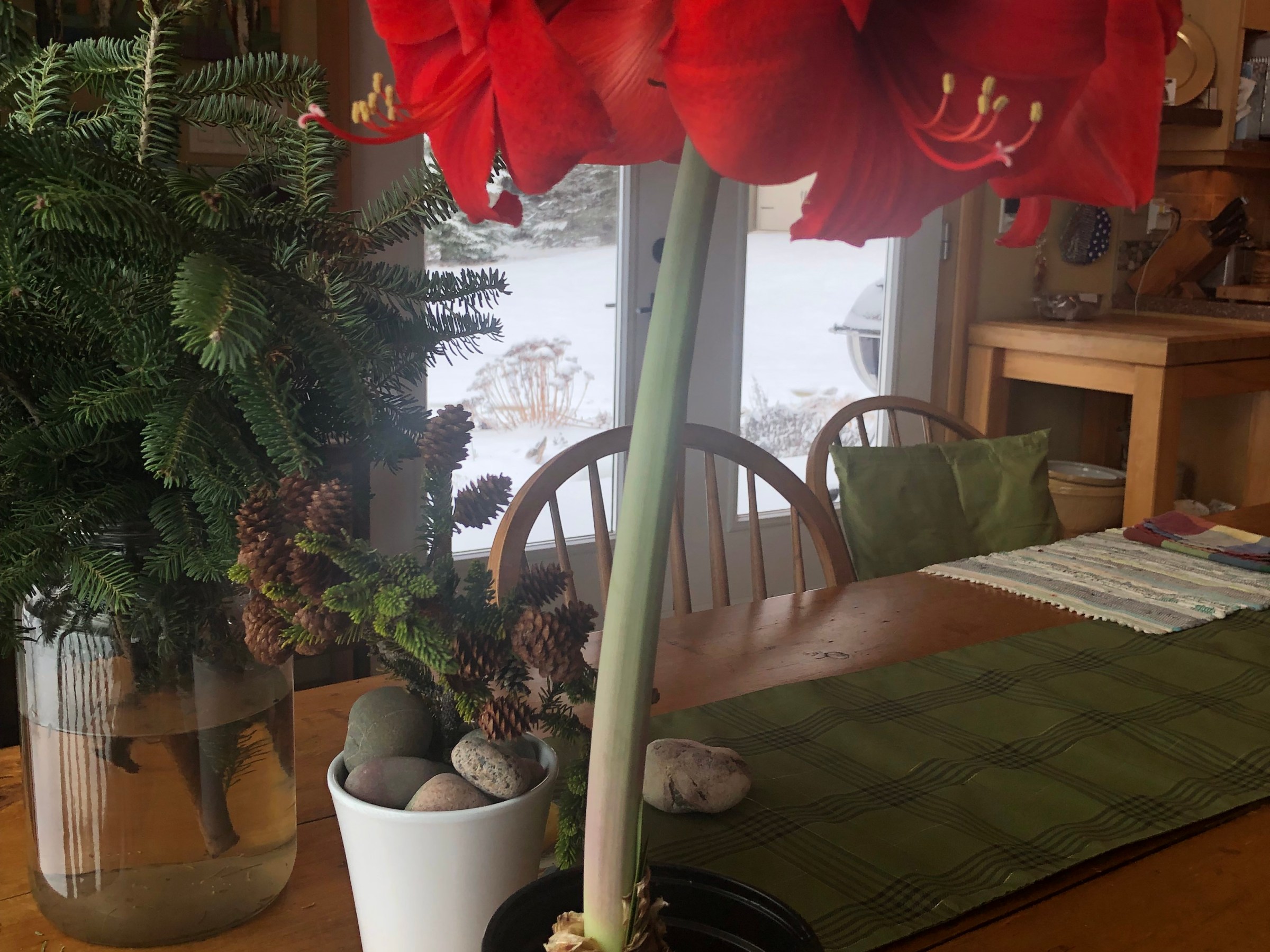 Except for a few deck lights and red balls with mini lights wrapped around my bamboo tree, Christmas decor is stashed away in storage. The poinsettia and some shortbread, fruitcake, nuts and cereal snack mix are reminders of the Sanctuary’s 12-day Christmas celebration. Coordinating all the family’s schedules to be here at the Sanctuary for a few days overlap, played out as strategically designed by all those concerned. No small feat. Well done, all. Photos and memories are lasting reminders of the fun and family fellowship we enjoyed. Wonderful.