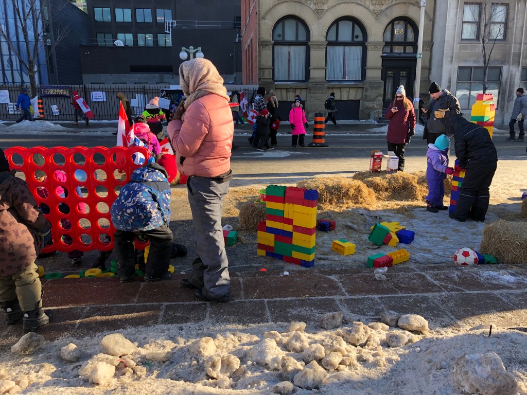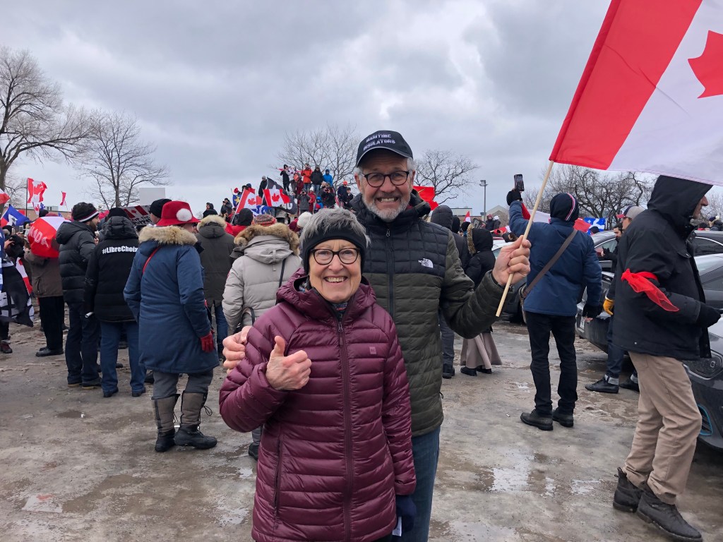 En route to Ottawa, we had a stopover to see family in Montreal. Where, unknown to us, a Freedom rally was planned for February 12, 2022! Perfect timing. I unravelled and waved my flag with thousands of Canadians gathered in Jarry Park for “United in Love for Freedom” (Unis Dans L’Amour Pour La Liberte). Politicians, educators and first nation leaders gave speeches; we sang the Canadian National Anthem, jostled amongst a crowd of young and old, shouted Liberté! We talked to friendly, smiling people en Anglais and en peu de français.