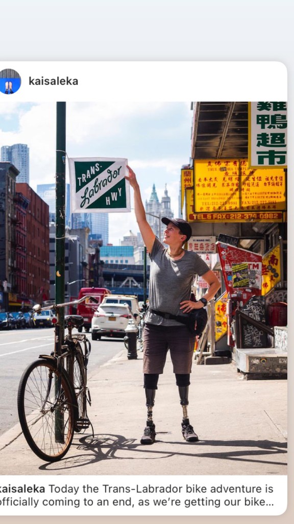Exploring Canada’s beauty and culture is amazing; meeting other travellers is equally fascinating, i.e. Kaisa and Christoffer in the line-up at the ferry. I had seen them pumping up the mountains the day before and judging from their gear it was clear they were long-haulers. They began this adventure (one of many) from their home in Finland and were gunning eventually for New York city, an ambitious goal for any cyclists. Their website shows a fascinating story of teamwork, courage and grit. The end of August Kaisa posted this Instagram photo from the Big Apple: they made it! More fuel for my fire: never stop dreaming and aiming for big adventures.