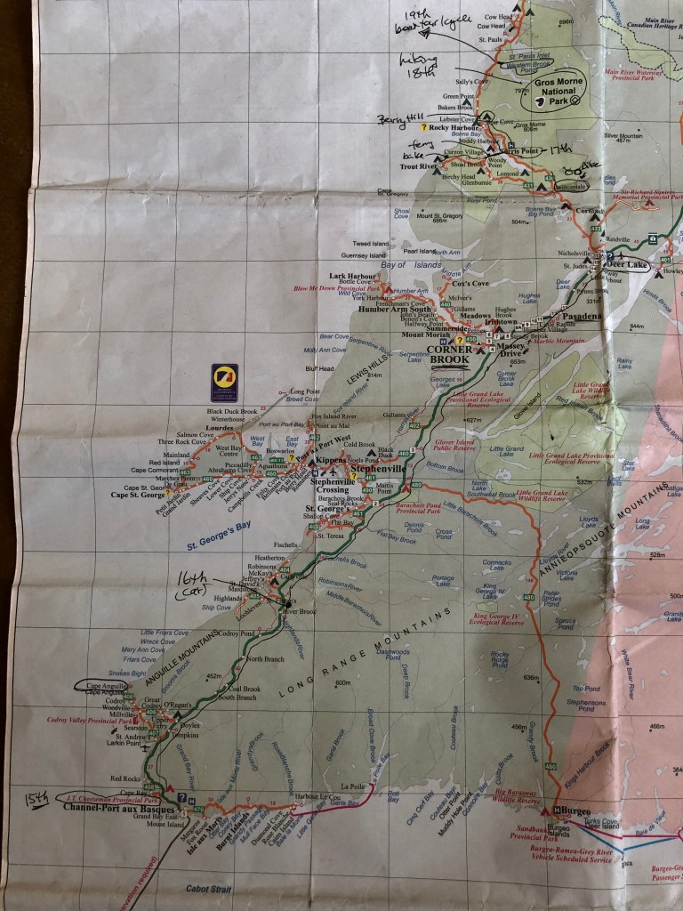 I bought a new bike to replace my older, heavier one. That was in March: when the weather and roads were still not compatible for a test run, but I needed a carrot to shore up motivation and spirit that my hip and back would be better. I would cycle this summer and specifically in mind was my first-ever visit to Newfoundland, a plan ‘in the works’ for many months, with friends I’ve adventured with before.