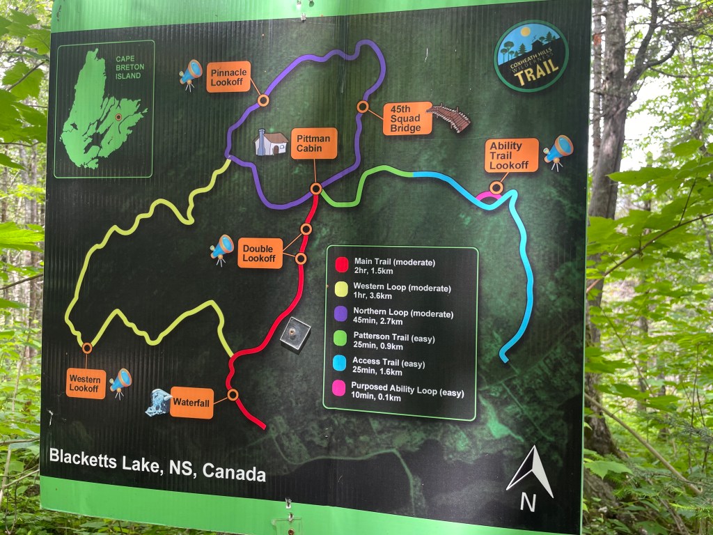 The next day we chose a hike closer to our AirBnB; Coxheath Hills Wilderness Trail near Sydney. A municipal trail with a steep incline to the apex, where the trail mostly levels off with a few ups and downs through the other loops. Beautiful sweeping views: on well-maintained trails except for the overgrown Western Lookoff, which we opted not to hike.