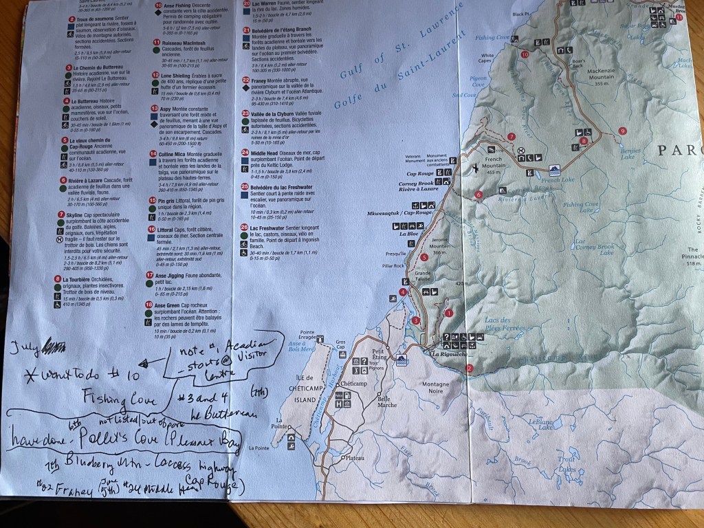 Back at the car, near the exit of the Park, for fun we checked our ticket stub for accessing the park. We were within minutes of our projected time we’d hoped to spend there. Our ‘wells’ were full with the awe and beauty of nature. We had enjoyed exercise and made memories. My marked-up Park trail map – with more trails to yet explore – would have to be tucked into my Nova Scotia binder for ‘next time.’